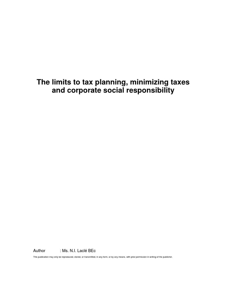 The Limits To Tax Planning Minimizing Taxes And Corporate Social Responsibility Tax Avoidance Loans Free 30 Day Trial Scribd