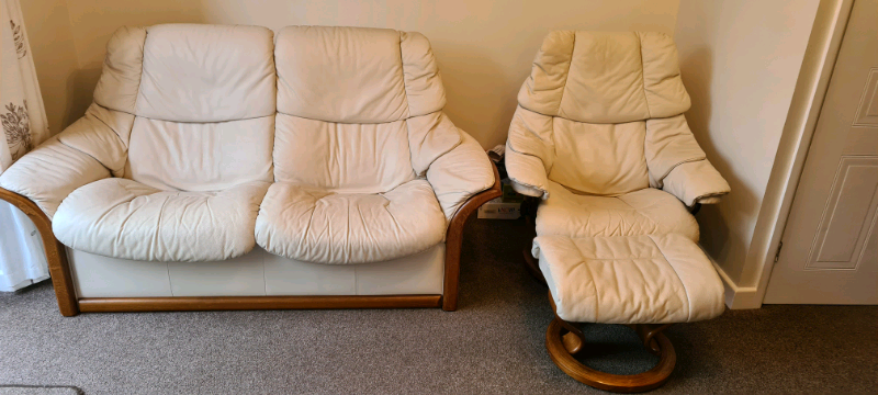 Ekornes Stressless Leather Recliner Chair And Stool Cream With