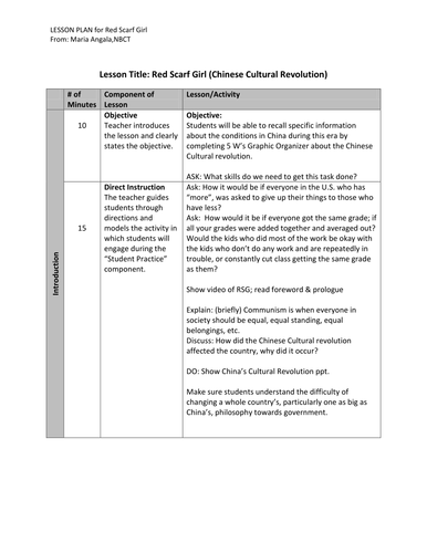 Lp1 Red Scarf Girl Chinese Cultural Revolution Teaching Resources